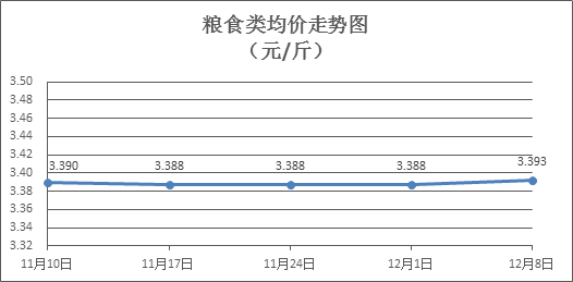 糧食類商品價(jià)格穩(wěn)中微升。所監(jiān)測(cè)的4種糧食類商品價(jià)格波動(dòng)情況為2漲2平,零售均價(jià)為每斤3.393元,環(huán)比上漲0.15%。其中:油粘米、富強(qiáng)粉零售均價(jià)分別為每斤3.52元、3.36元,環(huán)比分別上漲0.28%、持平。