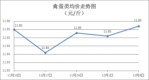 禽蛋類商品價(jià)格微幅盤(pán)升。所監(jiān)測(cè)的5種禽蛋類商品價(jià)格波動(dòng)情況為2漲1跌2平,綜合零售均價(jià)為每斤11.85元,環(huán)比上漲0.05%。其中:白條雞、白條鴨零售均價(jià)分別為每斤20.50元、15.31元,環(huán)比分別上漲0.20%、下降0.13%;雞蛋、鴨蛋零售均價(jià)分別為每斤6.56元、7.71元,環(huán)比分別上漲0.15%、持平。