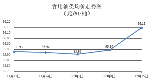 食用油類商品價格微幅上漲。所監(jiān)測的9種食用油(5L裝)商品價格波動情況為7漲2平,綜合零售均價為每桶96.15元,環(huán)比上漲0.21%。其中:金龍魚花生油、大豆油零售均價為每桶103.29元、62.58元,環(huán)比分別上漲0.38%、上漲0.16%。