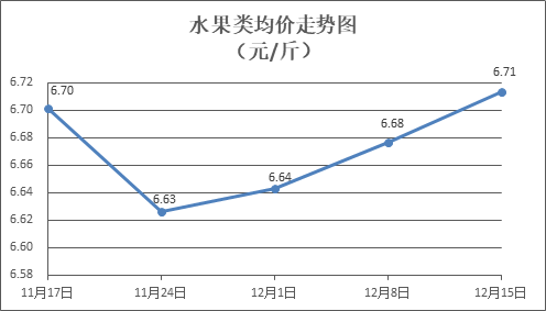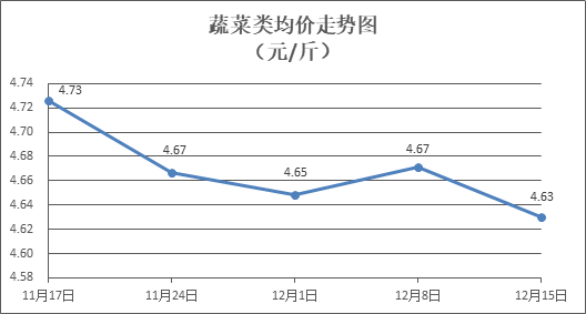 據(jù)本市21家農貿市場監(jiān)測數(shù)據(jù)顯示,上周(12月9日至12月15日)市場上各類“菜籃子”商品供應充足,所監(jiān)測的7大類“菜籃子”商品價格總體表現(xiàn)為4漲2跌1平。其中:糧食類商品價格基本平穩(wěn),食用油類、肉類、水果類、水產(chǎn)類商品價格總體略漲,禽蛋類、蔬菜類商品價格主降。隨著節(jié)日臨近,水果、水產(chǎn)等商品價格穩(wěn)中略漲。氣溫下降,預計肉禽類商品價格有所支撐。
