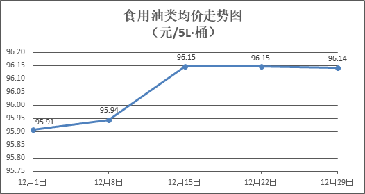 食用油類商品價格穩(wěn)中微降。所監(jiān)測的9種食用油(5L裝)商品價格波動情況為1漲3跌5平,綜合零售均價為每桶96.14元,環(huán)比下降0.01%。其中:金龍魚花生油、大豆油零售均價為每桶103.14元、62.49元,環(huán)比分別下降0.06%、下降0.06%。