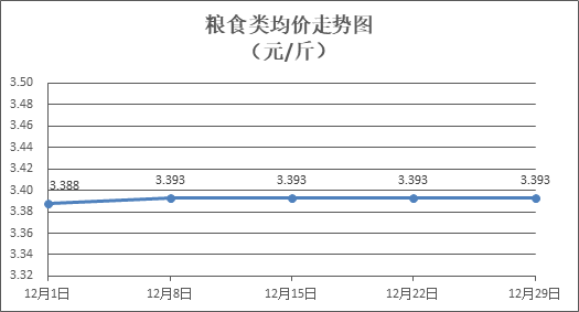 糧食類商品價格保持穩(wěn)定。所監(jiān)測的4種糧食類商品價格均持平,零售均價為每斤3.393元。其中:油粘米、富強粉零售均價分別為每斤3.52元、3.36元,環(huán)比均持平。