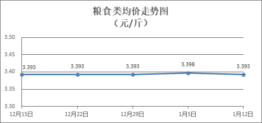 糧食類商品價格微幅波動。所監(jiān)測的4種糧食類商品價格波動情況為1漲1跌2平,零售均價為每斤3.393元,環(huán)比下降0.15%。其中:絲苗米、富強粉零售均價分別為每斤3.53元、3.40元,環(huán)比分別下降1.40%、上漲0.89%。