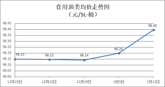 食用油類商品價格微幅上漲。所監(jiān)測的9種食用油(5L裝)商品價格波動情況為7漲2跌,綜合零售均價為每桶96.40元,環(huán)比上漲0.20%。其中:金龍魚花生油、金龍魚調(diào)和油零售均價為每桶103.31元、71.86元,環(huán)比分別上漲0.16%、上漲0.25%。