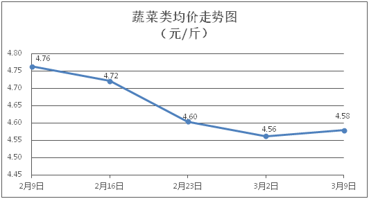 據(jù)本市21家農(nóng)貿(mào)市場(chǎng)監(jiān)測(cè)數(shù)據(jù)顯示,上周(3月3日至3月10日)市場(chǎng)上各類“菜籃子”商品供應(yīng)充足,所監(jiān)測(cè)的7大類“菜籃子”商品價(jià)格環(huán)比總體表現(xiàn)為2漲4跌1平。其中:糧油類商品價(jià)格基本平穩(wěn),肉禽蛋類商品價(jià)格總體略降,蔬果類、水產(chǎn)類價(jià)格窄幅盤整。