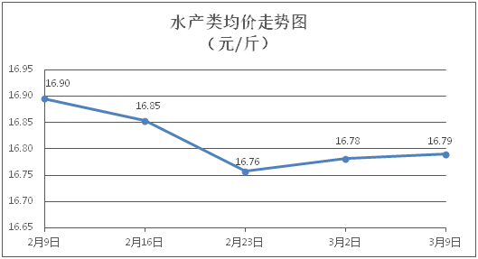 水產(chǎn)類商品價(jià)格微幅波動(dòng)。所監(jiān)測(cè)的9種水產(chǎn)商品價(jià)格波動(dòng)情況為5漲3跌1平,綜合均價(jià)為每斤16.79元,環(huán)比上漲0.05%。其中:草魚、鯽魚、鳙魚、羅非魚、基圍蝦零售均價(jià)分別為每斤11.00元、14.39元、10.74元、9.14元、30.12元,環(huán)比分別下降0.63%、上漲0.63%、下降0.74%、上漲0.11%、上漲0.17%。