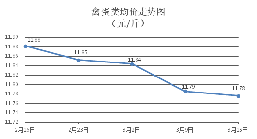 禽蛋類商品價(jià)格弱勢(shì)盤整。所監(jiān)測(cè)的5種禽蛋類商品價(jià)格波動(dòng)情況為1漲3跌1平,綜合零售均價(jià)為每斤11.78元,環(huán)比下降0.08%。其中:白條雞、白條鴨零售均價(jià)分別為每斤20.58元、15.19元,環(huán)比分別上漲0.59%、下降0.33%;雞蛋、鴨蛋零售均價(jià)分別為每斤6.38元、7.59元,環(huán)比分別下降0.78%、下降0.91%。
