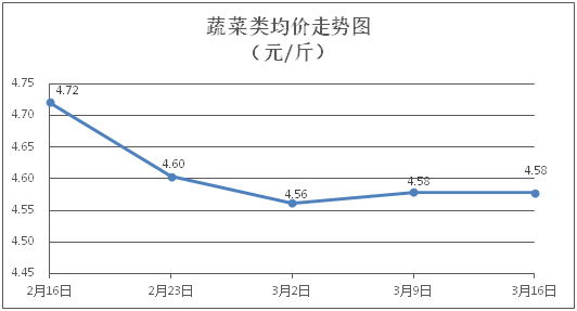 據(jù)本市21家農(nóng)貿(mào)市場(chǎng)監(jiān)測(cè)數(shù)據(jù)顯示,上周(3月10日至3月16日)市場(chǎng)上各類“菜籃子”商品供應(yīng)充足,所監(jiān)測(cè)的7大類“菜籃子”商品價(jià)格環(huán)比總體表現(xiàn)為2漲5跌。其中:糧食類商品價(jià)格基本平穩(wěn),食用油類、水果類商品價(jià)格略有上漲,肉禽蛋類商品價(jià)格總體略降,蔬菜類、水產(chǎn)類價(jià)格窄幅盤整。