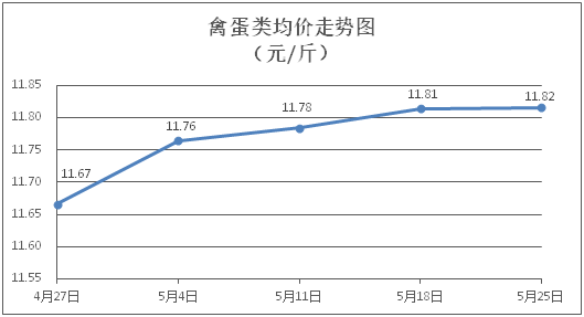 禽蛋類商品價(jià)格窄幅盤整。所監(jiān)測(cè)的5種禽蛋類商品價(jià)格波動(dòng)情況為3漲1跌1平,綜合零售均價(jià)為每斤11.82元,環(huán)比上漲0.02%。其中:白條雞、白條鴨零售均價(jià)分別為每斤20.75元、15.27元,環(huán)比分別上漲0.14%、下降0.26%;雞蛋、鴨蛋零售均價(jià)分別為每斤6.64元、7.20元,環(huán)比分別上漲0.15%、上漲0.14%。