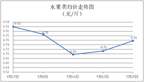 水果類商品價(jià)格普遍上漲。所監(jiān)測(cè)的6種水果商品價(jià)格波動(dòng)情況為4漲1跌1平,綜合零售均價(jià)為每斤6.76元,環(huán)比上漲0.67%。其中橙子、香蕉、葡萄零售均價(jià)分別為每斤6.43元、3.42元、14.33元,環(huán)比分別上漲1.26%、上漲0.29%、上漲1.42%。