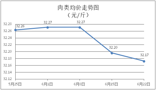 肉類商品價(jià)格微幅盤降。所監(jiān)測(cè)的8種肉類商品價(jià)格波動(dòng)情況為3漲4跌1平,綜合零售均價(jià)為每斤32.17元,環(huán)比下降0.07%。其中:排骨、精瘦肉、肋條肉、牛肉、帶骨羊肉零售均價(jià)分別為每斤30.16元、19.00元、15.83元、46.47元、42.36元,環(huán)比分別下降0.26%、下降0.16%、下降0.44%、上漲0.09%、上漲0.09%。