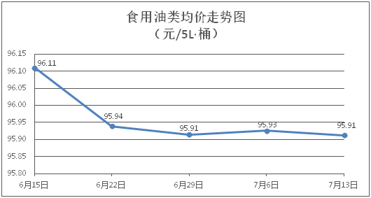 食用油類商品價(jià)格基本平穩(wěn)。所監(jiān)測(cè)的9種食用油(5L裝)商品價(jià)格波動(dòng)情況為1跌8平,綜合零售均價(jià)為每桶95.91元,環(huán)比下降0.01%。其中:金龍魚(yú)花生油、玉米油零售均價(jià)為每桶102.83元、76.06元,環(huán)比分別持平、下降0.16%。