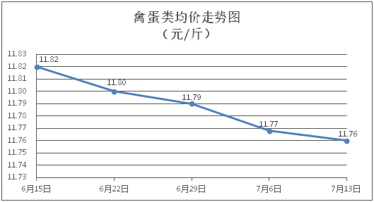 禽蛋類商品價(jià)格窄幅盤降。所監(jiān)測(cè)的5種禽蛋類商品價(jià)格波動(dòng)情況為1漲2跌2平,綜合零售均價(jià)為每斤11.76元,環(huán)比下降0.07%。其中:白條雞、白條鴨零售均價(jià)分別為每斤20.58元、15.42元,環(huán)比分別上漲0.15%、持平;雞蛋、鴨蛋零售均價(jià)分別為每斤6.53元、7.11元,環(huán)比分別下降0.76%、持平。