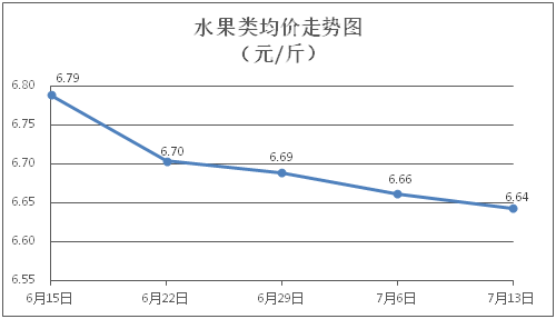 水果類商品價(jià)格穩(wěn)中微降。所監(jiān)測(cè)的6種水果商品價(jià)格波動(dòng)情況為2跌4平,綜合零售均價(jià)為每斤6.64元,環(huán)比下降0.28%。其中橙子、蘋果、葡萄零售均價(jià)分別為每斤6.42元、7.64元、13.75元,環(huán)比分別持平、持平、下降0.88%。
