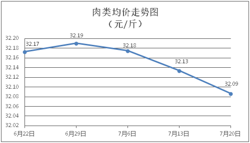 肉類商品價(jià)格走勢(shì)偏弱。所監(jiān)測的8種肉類商品價(jià)格波動(dòng)情況為2漲5跌1平,綜合零售均價(jià)為每斤32.09元,環(huán)比下降0.15%。其中:排骨、精瘦肉、牛肉、帶骨羊肉零售均價(jià)分別為每斤30.25元、18.88元、46.51元、42.08元,環(huán)比分別上漲0.20%、下降0.11%、下降0.30%、下降0.26%。
