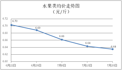 水果類商品價(jià)格升降互現(xiàn)。所監(jiān)測的6種水果商品價(jià)格波動(dòng)情況為3漲3跌,綜合零售均價(jià)為每斤6.64元,環(huán)比下降0.13%。其中橙子、香蕉、梨零售均價(jià)分別為每斤6.45元、3.38元、5.29元,環(huán)比分別上漲0.47%、下降0.29%、下降1.31%。