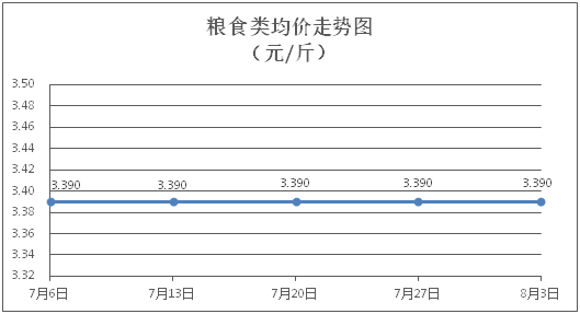 糧食類(lèi)商品價(jià)格保持穩(wěn)定。所監(jiān)測(cè)的4種糧食類(lèi)商品價(jià)格均持平,綜合零售均價(jià)為每斤3.390元。其中:珍珠米、面粉零售均價(jià)分別為每斤3.10元、3.40元,環(huán)比均持平。