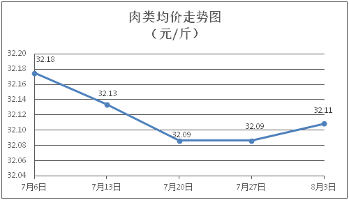 肉類(lèi)商品價(jià)格微幅上漲。所監(jiān)測(cè)的8種肉類(lèi)商品價(jià)格波動(dòng)情況為5漲3平,綜合零售均價(jià)為每斤32.11元,環(huán)比上漲0.07%。其中:排骨、精瘦肉、牛肉、帶骨羊肉零售均價(jià)分別為每斤30.22元、18.92元、46.54元、42.11元,環(huán)比分別上漲0.23%、上漲0.05%、上漲0.09%、上漲0.05%。
