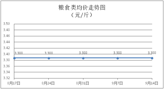 糧食類商品價格保持穩(wěn)定。所監(jiān)測的4種糧食類商品價格均持平,綜合零售均價為每斤3.388元。其中:絲苗米、面粉零售均價分別為每斤3.51元、3.39元,環(huán)比均持平。