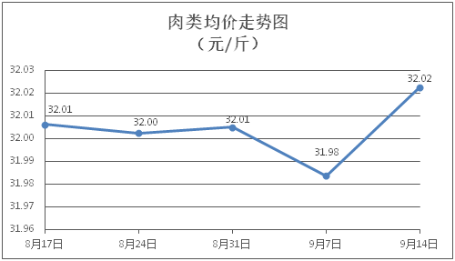 肉類商品價格有所回升。所監(jiān)測的8種肉類商品價格波動情況為5漲1跌2平,綜合零售均價為每斤32.02元,環(huán)比上漲0.12%。其中:排骨、精瘦肉、牛肉、帶骨羊肉零售均價分別為每斤30.28元、19.01元、46.36元、41.99元,環(huán)比分別上漲0.17%、上漲0.74%、上漲0.15%、下降0.05%。