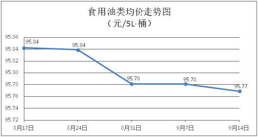食用油類商品價格穩(wěn)中微降。所監(jiān)測的9種食用油(5L裝)商品價格波動情況為2漲3跌4平,綜合零售均價為每桶95.77元,環(huán)比下降0.01%。其中:魯花花生油、菜籽油零售均價分別為每桶156.42元、73.52元,環(huán)比分別上漲0.06%、下降0.08%。