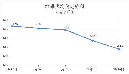 水果類商品價格小幅下降。所監(jiān)測的6種水果商品價格波動情況為4跌2平,綜合零售均價為每斤6.49元,環(huán)比下降0.74%。其中橙子、香蕉、葡萄零售均價分別為每斤7.15元、3.05元、12.69元,環(huán)比分別下降0.42%、下降0.33%、下降1.40%。