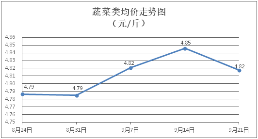蔬菜類商品價(jià)格升降互現(xiàn)。所監(jiān)測的32 種蔬菜商品價(jià)格波動(dòng)情況為11漲18跌3平,綜合零售均價(jià)為每斤4.82元,環(huán)比下降0.59%。其中:漲幅居前的品種包括絲瓜、萵筍、白莧菜,零售均價(jià)分別為每斤5.71元、4.35元、4.49元,環(huán)比分別上漲6.73%、4.32%、2.51%;跌幅靠前的品種包括本地菜心、水空心菜、青皮冬瓜,零售均價(jià)分別為每斤5.20元、4.03元、2.53元,環(huán)比分別下降6.31%、5.84%、4.17%。