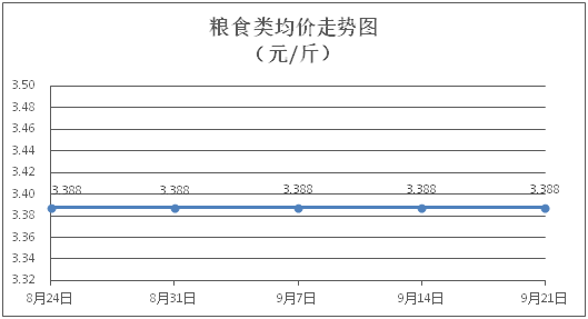 糧食類商品價(jià)格保持穩(wěn)定。所監(jiān)測的4種糧食類商品價(jià)格均持平,綜合零售均價(jià)為每斤3.388元。其中:絲苗米、面粉零售均價(jià)分別為每斤3.51元、3.39元,環(huán)比均持平。