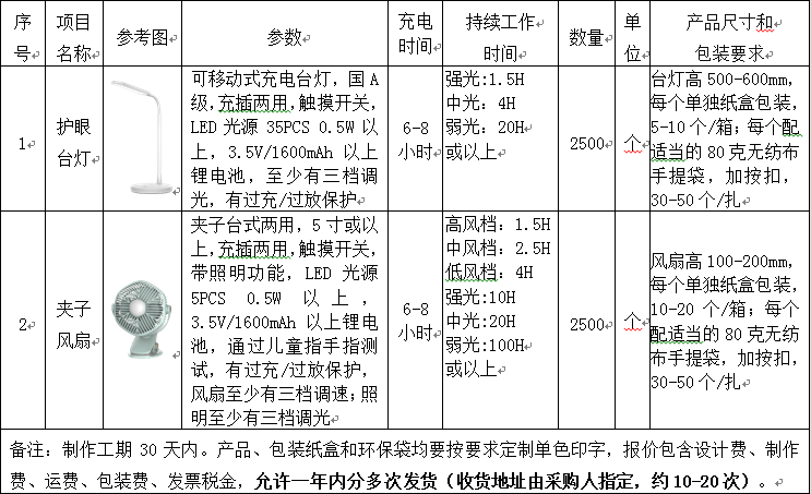 3.采購產(chǎn)品(包括臺燈、風(fēng)扇、環(huán)保袋)樣品