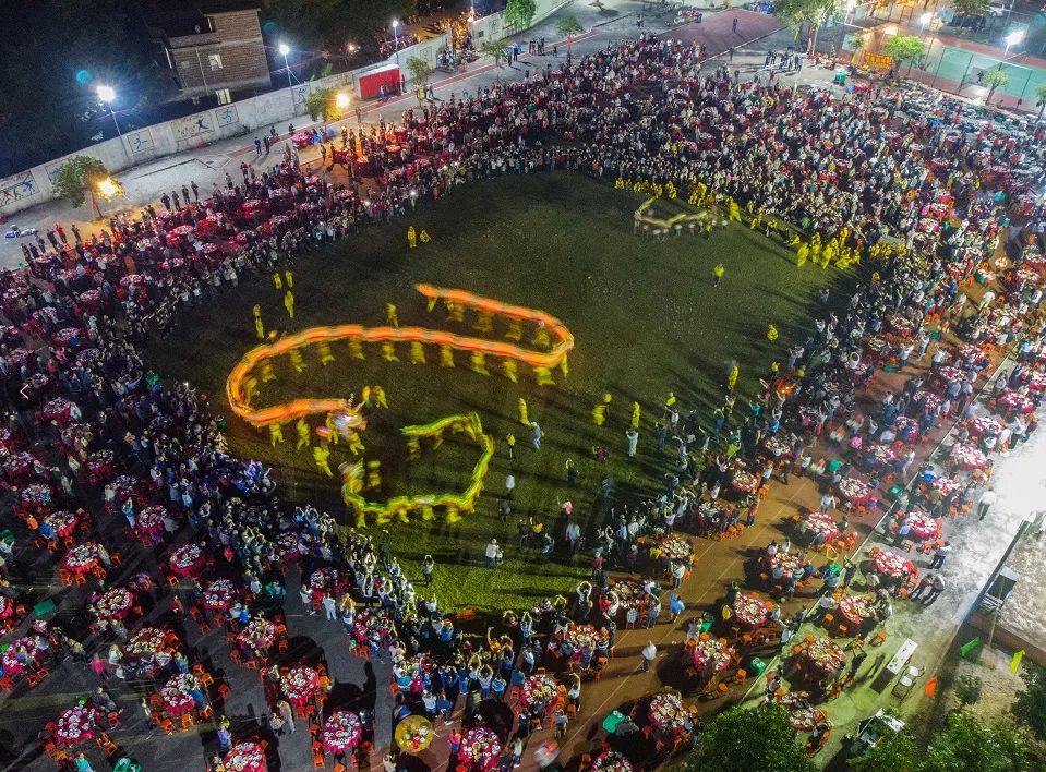 舞龍的人每輪25人,其動作、節(jié)拍高度統(tǒng)一,交替時,不歇舞,不亂陣。技藝舞姿變化多樣,舞動時燭光閃閃,飛躍行云,栩栩如生,千姿百態(tài),變化多端。