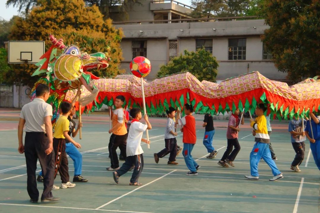篁灣中心小學(xué)全體教師學(xué)習(xí)舞龍技巧