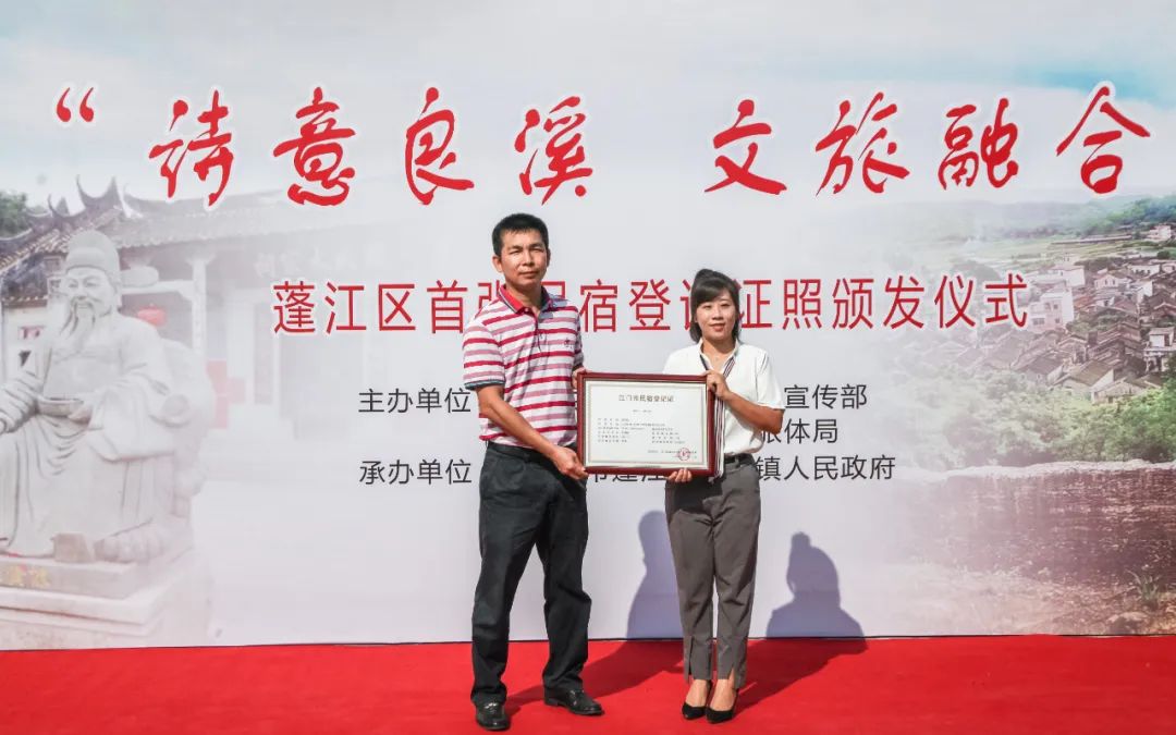 8月28日上午,“詩意良溪,文旅融合"蓬江區(qū)首張民宿登記證照頒發(fā)儀式在棠下鎮(zhèn)良溪村榕樹講堂舉行——