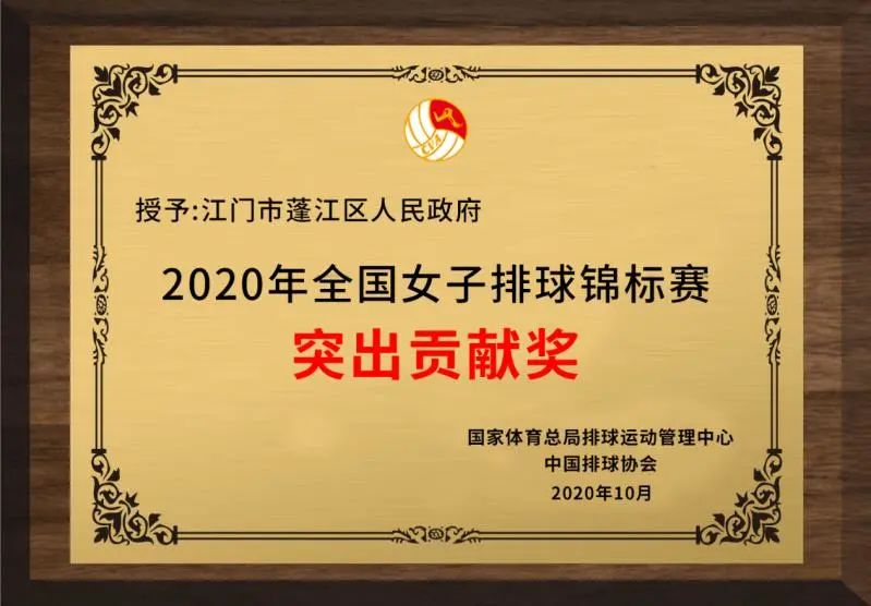 國家體育總局排球運動管理中心、中國排球協(xié)會為江門市文化廣電旅游體育局授予“特別貢獻獎”;為蓬江區(qū)人民政府、江門保利華體體育會展中心有限公司授予“突出貢獻獎”。蓬江區(qū)委常委、宣傳部部長梁鳳瓊代表蓬江區(qū)出席領(lǐng)獎。