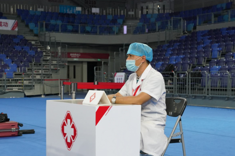 賽事期間,來自江門市第二人民醫(yī)院的醫(yī)護人員駐守比賽現(xiàn)場,為賽事突發(fā)的衛(wèi)生健康情況時刻做好準(zhǔn)備。
