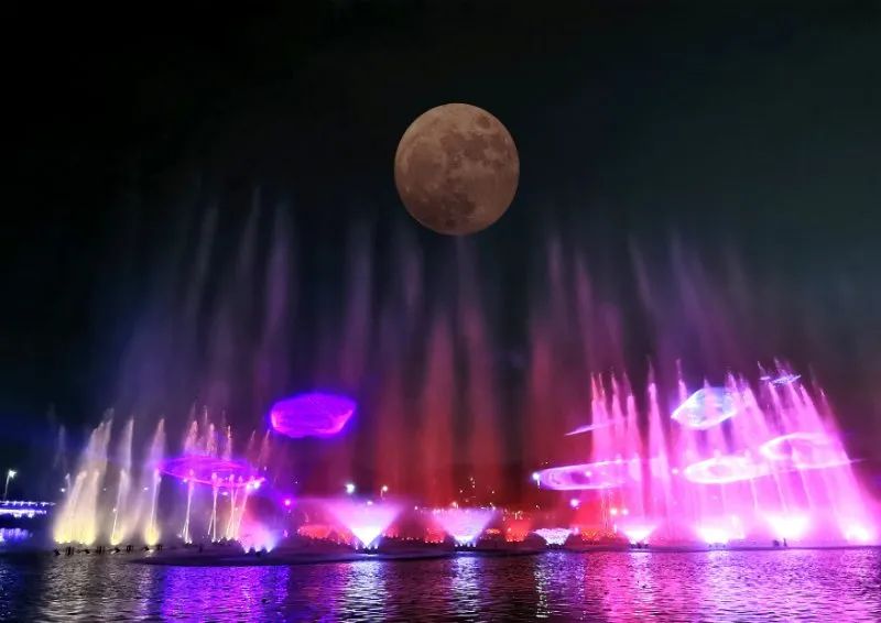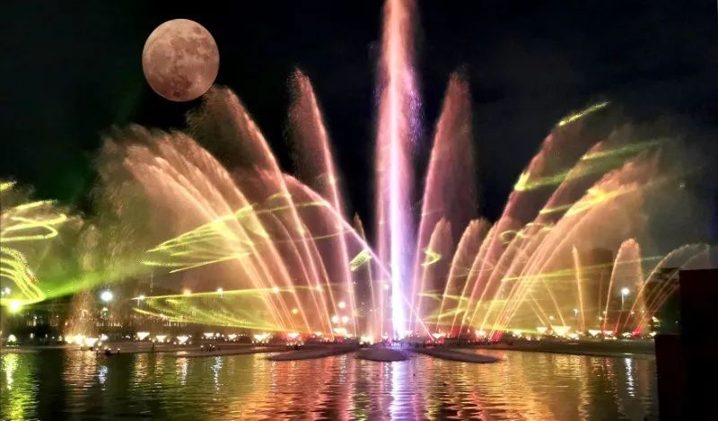 每當(dāng)夜幕降臨,園山湖公園的夜間噴泉隨音樂節(jié)奏變幻而成的絢爛場景,引人矚目。