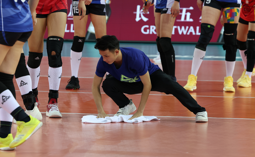 衛(wèi)生清潔人員、細致入微,每天最早來,最晚離開,對場館每個房間和角落進行細致清潔,確保賽區(qū)全方位的衛(wèi)生消毒工作。