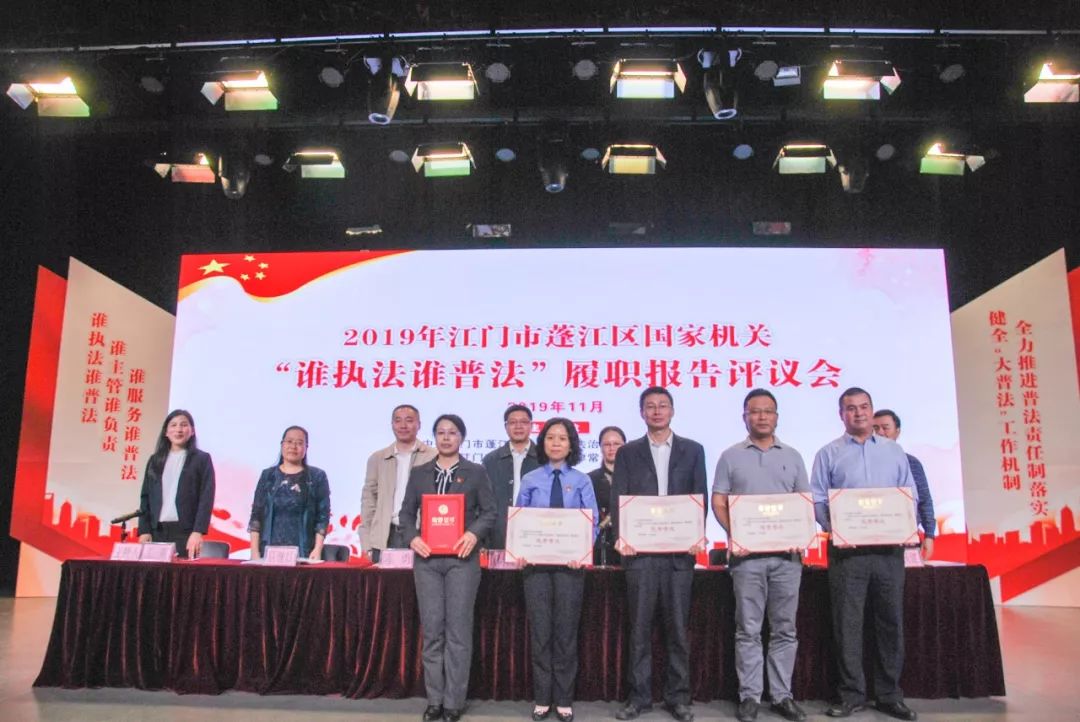 11月20日下午,蓬江區(qū)2019年國(guó)家機(jī)關(guān)“誰執(zhí)法誰普法”履職報(bào)告評(píng)議會(huì)在市工人文化宮舉行。市司法局黨組成員、副局長(zhǎng)陳勇,蓬江區(qū)委副書記、區(qū)委政法委書記林偉勤,區(qū)領(lǐng)導(dǎo)梁鳳瓊、張長(zhǎng)齊、李沃健等參加會(huì)議。