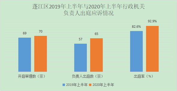 蓬江區(qū)堅(jiān)持把行政機(jī)關(guān)負(fù)責(zé)人出庭應(yīng)訴工作作為推進(jìn)依法行政、建設(shè)法治政府的重要內(nèi)容,采取多項(xiàng)舉措,合力推動(dòng)行政機(jī)關(guān)負(fù)責(zé)人出庭應(yīng)訴工作制度化、規(guī)范化和常態(tài)化。2020年上半年,蓬江區(qū)行政應(yīng)訴案件開庭審理70宗,負(fù)責(zé)人出庭應(yīng)訴65宗,出庭率達(dá)到92.9%,同比去年上升10.3個(gè)百分點(diǎn),遠(yuǎn)高于全市平均水平,實(shí)現(xiàn)了行政機(jī)關(guān)負(fù)責(zé)人出庭應(yīng)訴常態(tài)化,促進(jìn)了行政糾紛的實(shí)質(zhì)性化解。