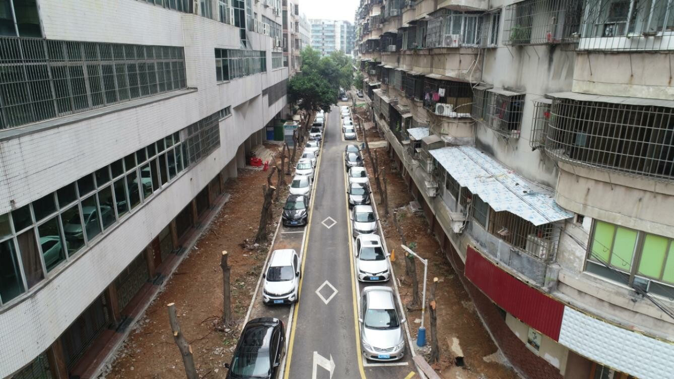 但變身前的五福街社區(qū)并非如此。該社區(qū)建筑多始建于上世紀(jì)八、九十年代建造,屬于典型老舊小區(qū),小區(qū)雜物亂堆、道路破損、公共設(shè)施陳舊,加之當(dāng)時沒有規(guī)劃停車位,導(dǎo)致大多數(shù)車輛占道停放,造成交通擁擠,嚴(yán)重影響著居民的生活品質(zhì)。