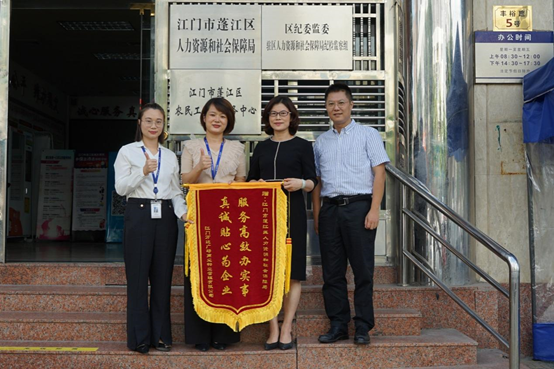 近日,蓬江區(qū)人社局收到轄區(qū)某商業(yè)物業(yè)管理有限公司送來“服務高效辦實事,真誠貼心為企業(yè)”的錦旗,對人社局快速辦理業(yè)務、解決企業(yè)實際困難的做法表示感謝?!敖鸨y杯不如群眾的口碑”,蓬江區(qū)人社局把黨史學習教育同人社工作結合起來,深入開展“我為群眾辦實事”實踐活動,緊緊圍繞人社系統(tǒng)為民惠民便民事項,精心打出“加減乘除”組合拳,以實際行動踐行學黨史、悟思想、辦實事、開新局,讓就業(yè)有保障、社保有兜底、人才有助力、關系更和諧。