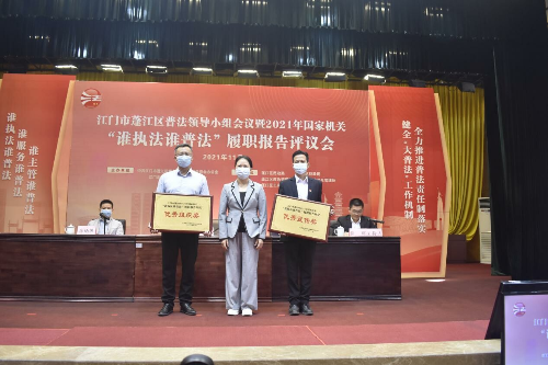 區(qū)民政局獲評(píng)“2021年蓬江區(qū)國(guó)家機(jī)關(guān)‘誰(shuí)執(zhí)法誰(shuí)普法’履職評(píng)議”優(yōu)秀等級(jí)及優(yōu)秀宣傳獎(jiǎng)