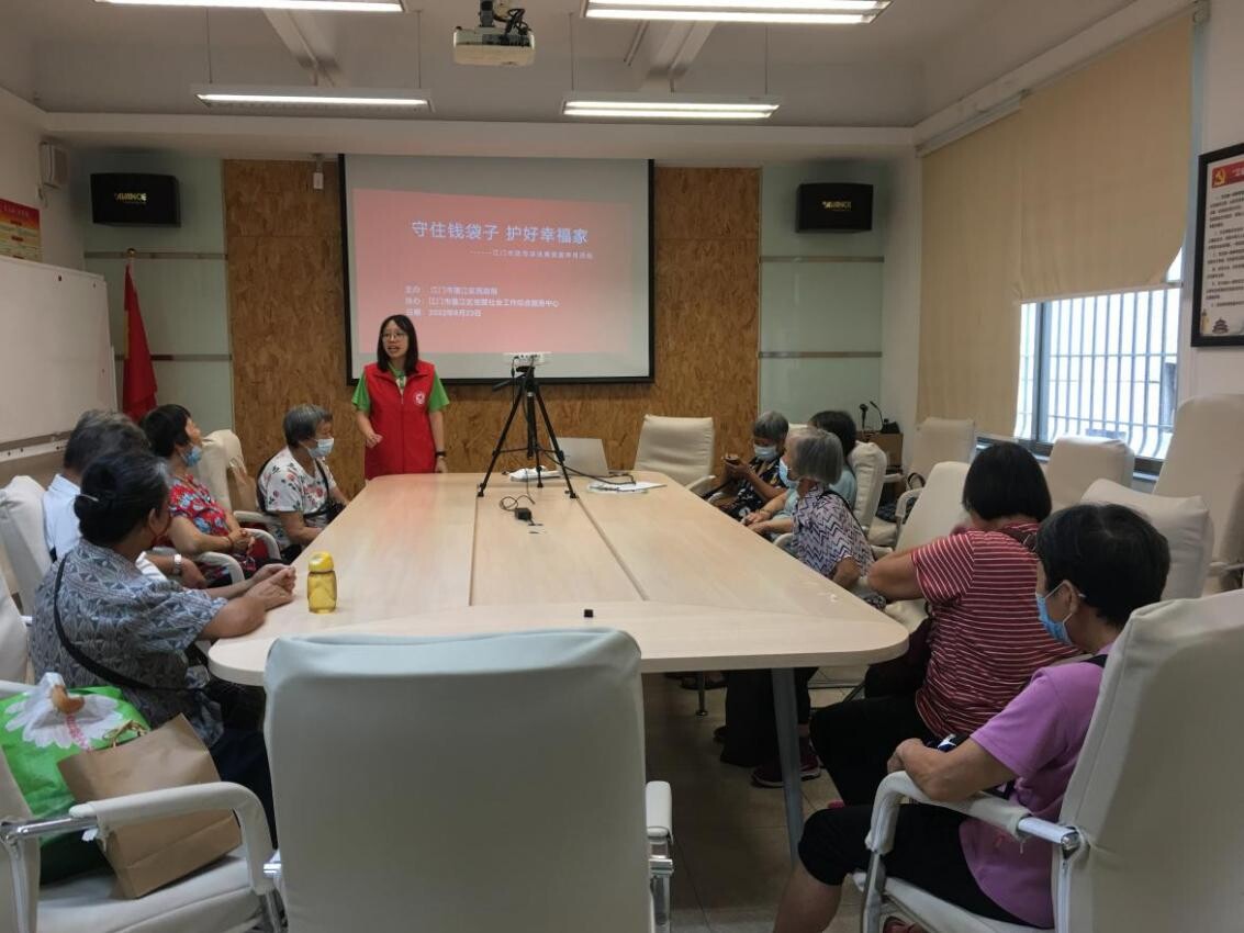 為進(jìn)一步提高老年人群體對(duì)非法集資等犯罪行為的防范意識(shí),2022年6月23日,我局于蓬江區(qū)居家養(yǎng)老服務(wù)中心開展以“守住錢袋子,護(hù)好幸福家”為主題的防范非法集資專題講座。會(huì)上,社工志愿者們向老年人們介紹養(yǎng)老領(lǐng)域非法集資的各類“套路”,教導(dǎo)長(zhǎng)者學(xué)習(xí)防范對(duì)策,提升長(zhǎng)者防范意識(shí),守好自己的養(yǎng)老“錢袋子”。