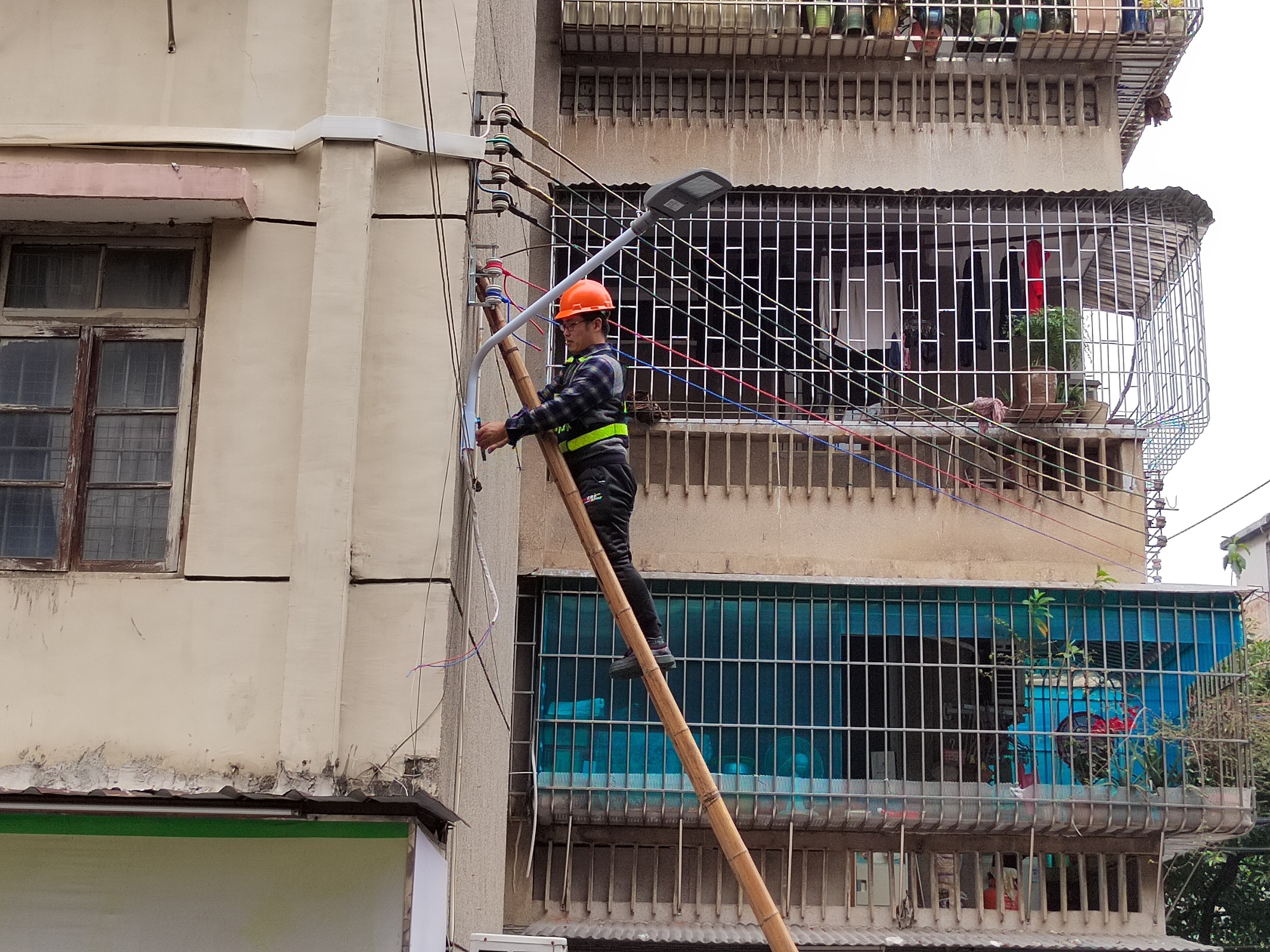 “雙龍里4號照明度不夠,給附近的居民夜間出行帶來不便,請貴單位在該處安裝路燈。”收到任務(wù)后,剛“陽康”的謝沃島第一時間趕到現(xiàn)場查看情況,了解到雙龍里4號為附近居民的主要出行道路,平常車流量多,特別是晚上,下班回家的人很多,存在很大的安全隱患。排查問題后,謝沃島、呂金和加班加點(diǎn)在該處安裝路燈,并于當(dāng)天恢復(fù)照明。