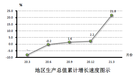 1-3月,蓬江區(qū)統(tǒng)籌疫情防控和經(jīng)濟(jì)社會(huì)發(fā)展成效顯現(xiàn),經(jīng)濟(jì)社會(huì)穩(wěn)定恢復(fù)。從同比數(shù)據(jù)看,受2020年同期基數(shù)較低等因素影響,部分主要指標(biāo)同比增速較高、增勢(shì)平穩(wěn),宏觀指標(biāo)處于合理區(qū)間。根據(jù)江門(mén)市地區(qū)生產(chǎn)總值統(tǒng)一核算結(jié)果,2021年一季度蓬江區(qū)地區(qū)生產(chǎn)總值184.69億元,同比增長(zhǎng)21.8%。