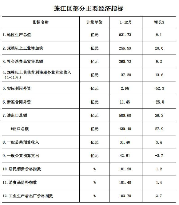 2021年1-12月蓬江區(qū)經(jīng)濟運行簡況