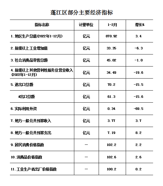 2023年1-2月蓬江區(qū)經濟運行簡況