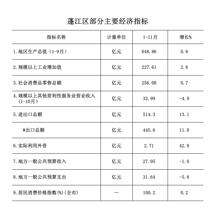 2024年1-11月蓬江區(qū)經(jīng)濟(jì)運(yùn)行簡況