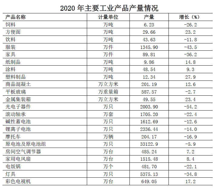 全年規(guī)模以上工業(yè)增加值比上年下降0.7%。分注冊類型看,國有及國有控股企業(yè)下降4.2%,外商及港澳臺投資企業(yè)增長0.7%,股份制企業(yè)下降1.1%,集體企業(yè)下降58.8%;分輕重工業(yè)看,輕工業(yè)下降5.5%,重工業(yè)增長2.4%;分企業(yè)規(guī)模看,大型企業(yè)下降0.5%,中型企業(yè)增長4.1%,小型企業(yè)下降3.4%,微型企業(yè)下降25.2%。