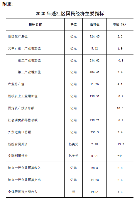 2020年江門市蓬江區(qū)國民經(jīng)濟(jì)和社會發(fā)展統(tǒng)計(jì)公報(bào)