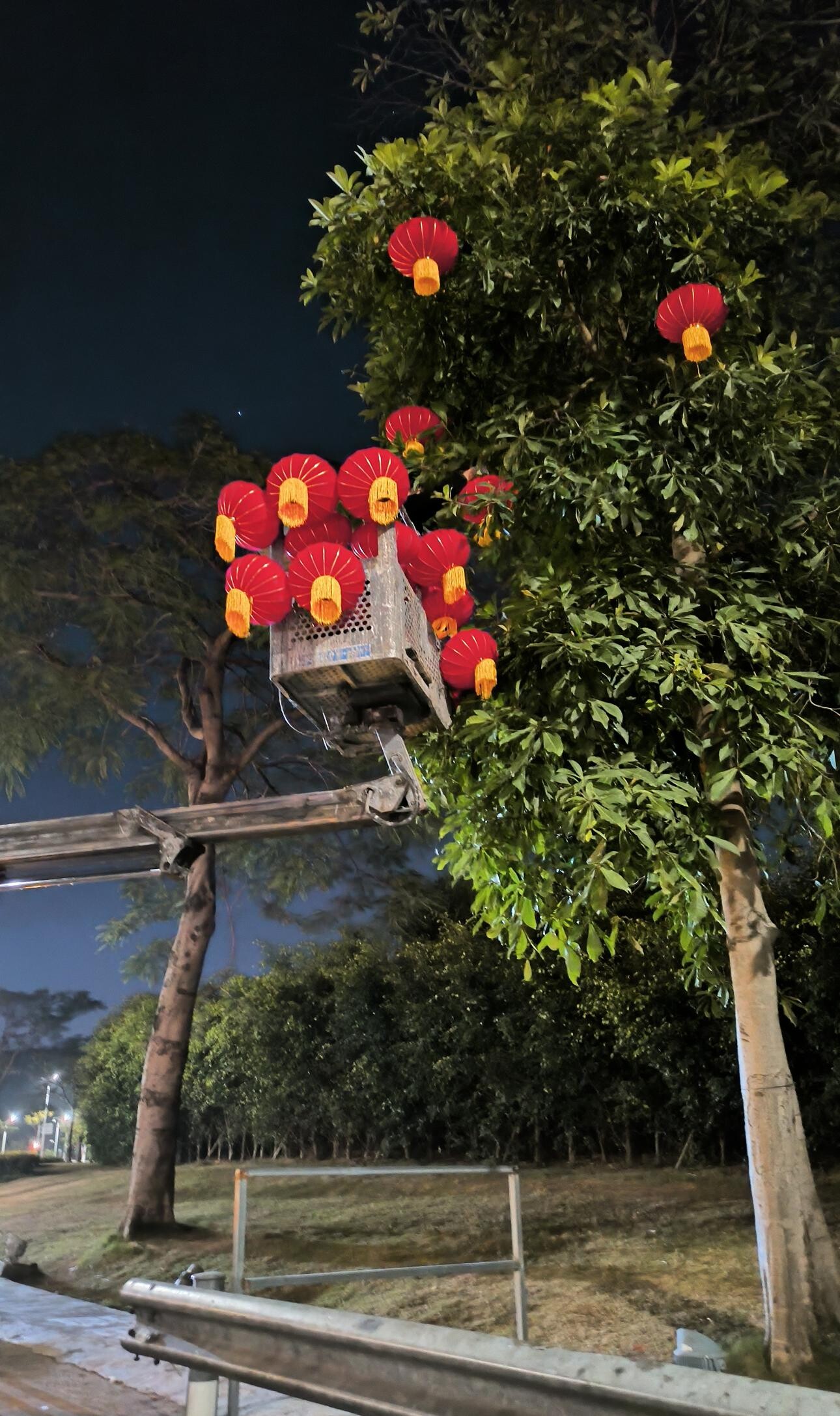 大大的紅燈籠把市政工人包圍了